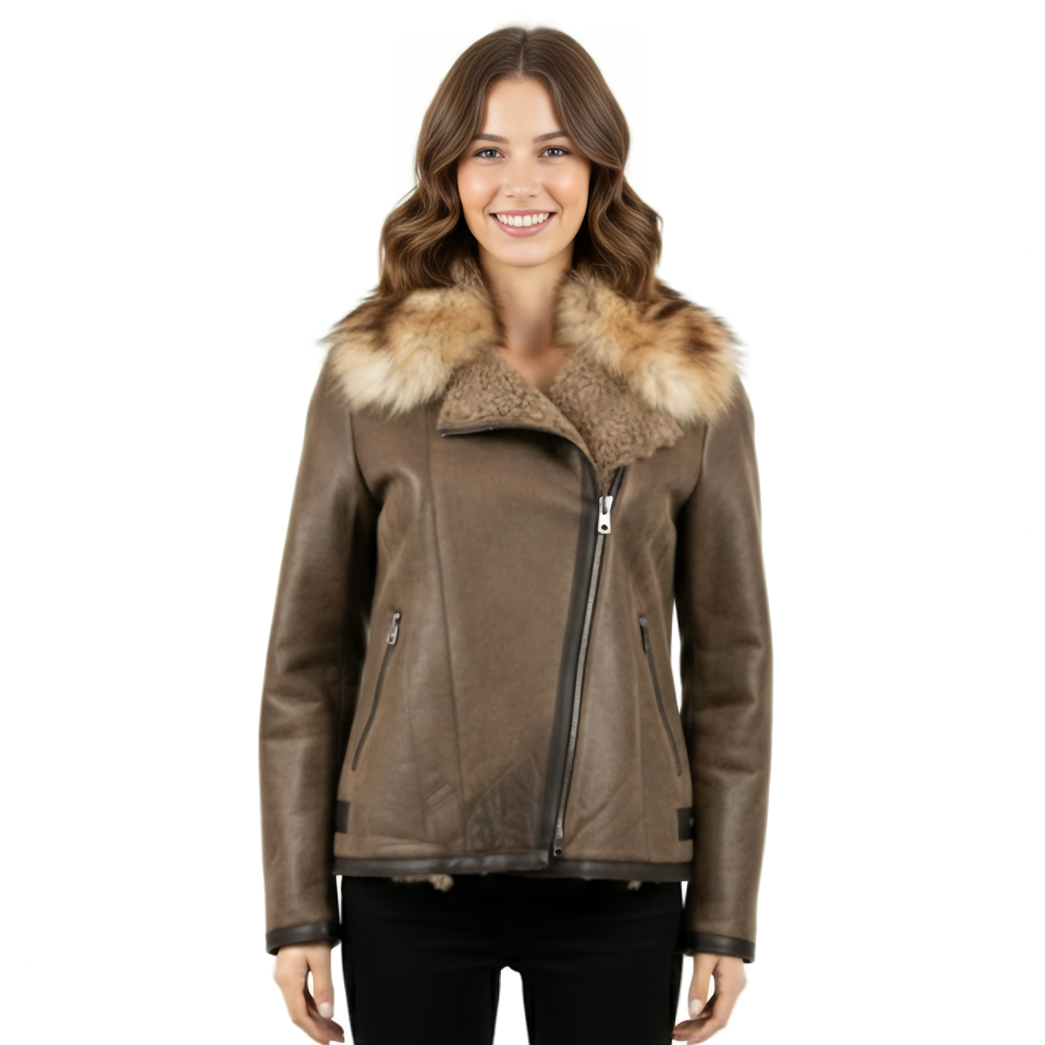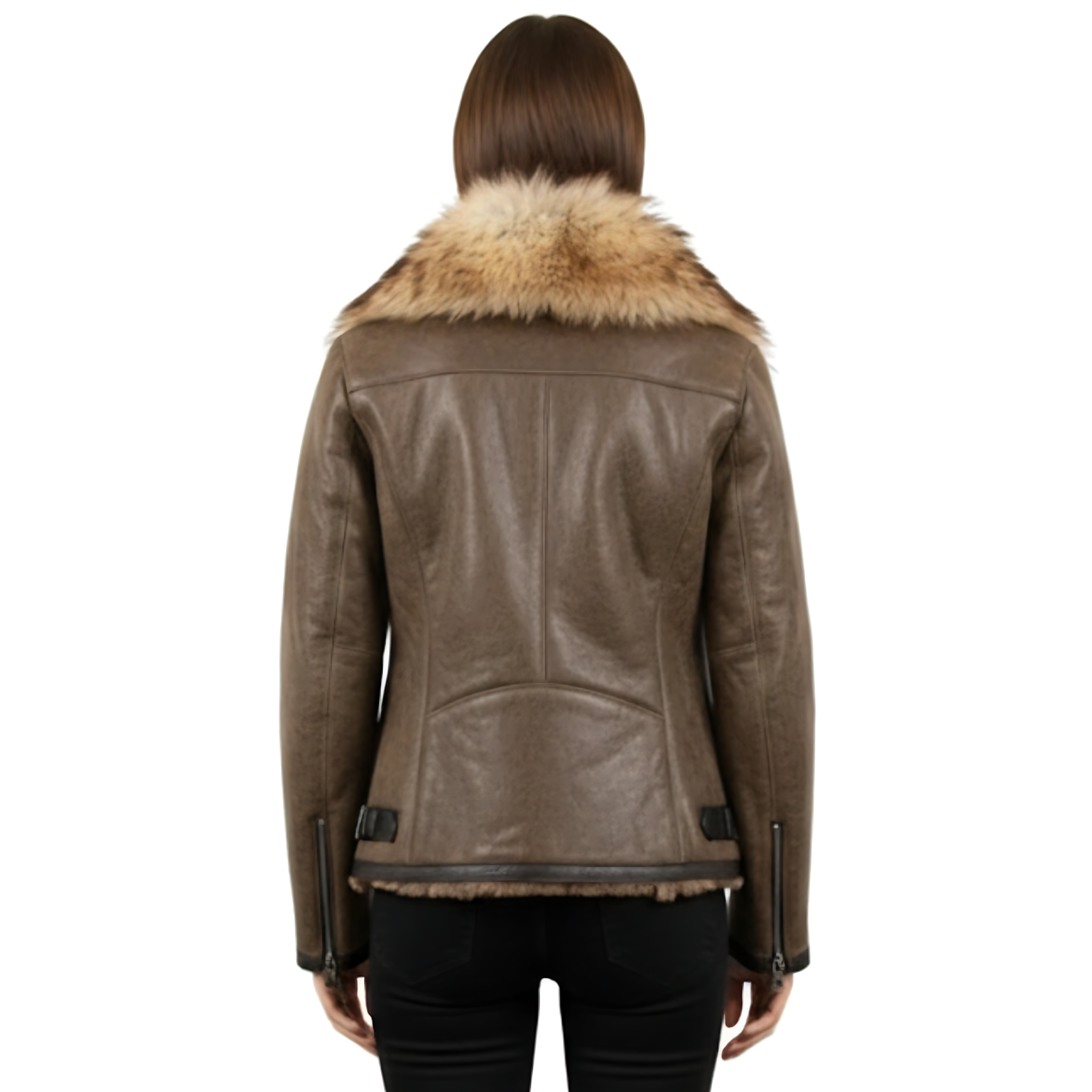 Short Coffee Sheepskin with White Amber Fur